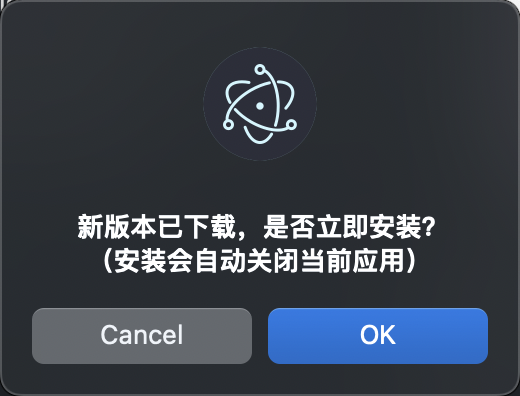 上方代码中,我们通过监听渲染进程的 install 事件来安装新包。目的是在下载完新包后先提醒用户是否安装,用户确认安装后才执行安装,强制安装会影响用户使用。