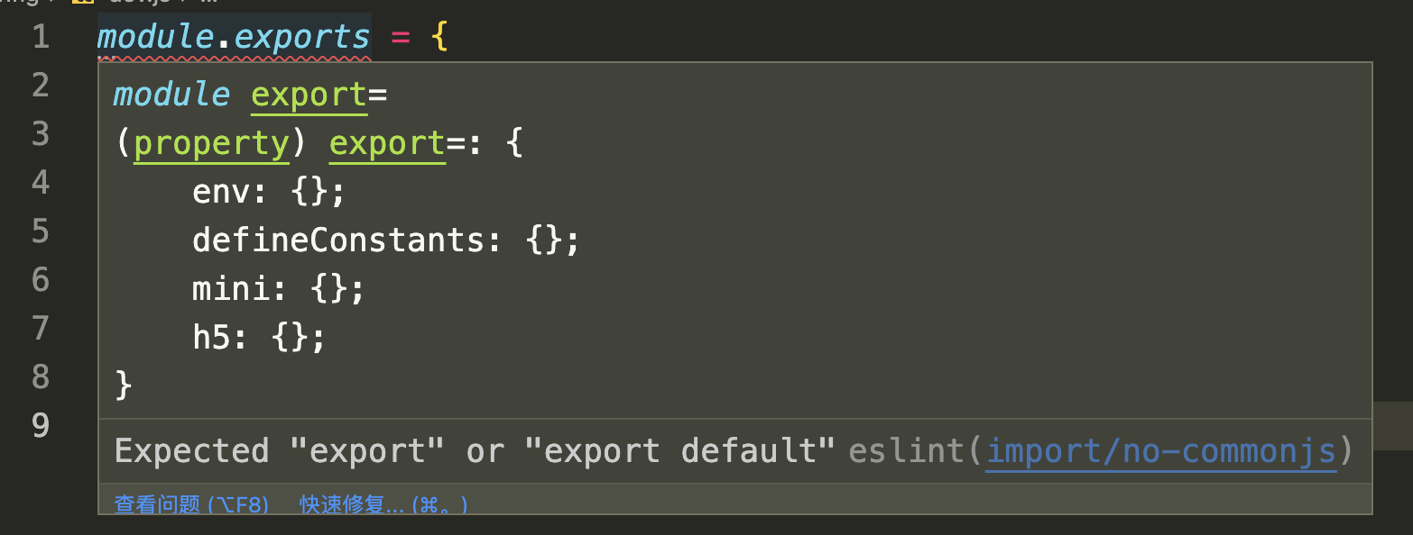 项目默认会安装 Eslint 检测代码,打开 config/ 下的配置文件时会报错: