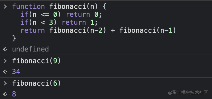上面介绍了循环实现斐波那契数列的方法,我们再看递归如何实现。