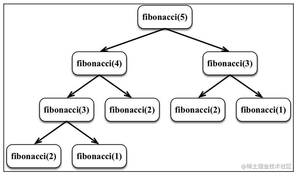仔细看,你会发现图中 fibonacci(2) 调用了 3 次,fibonacci(3) 调用了 2 次,这样重复执行函数肯定会降低性能。因此我们可以通过缓存值,也就是记忆化来优化逻辑。